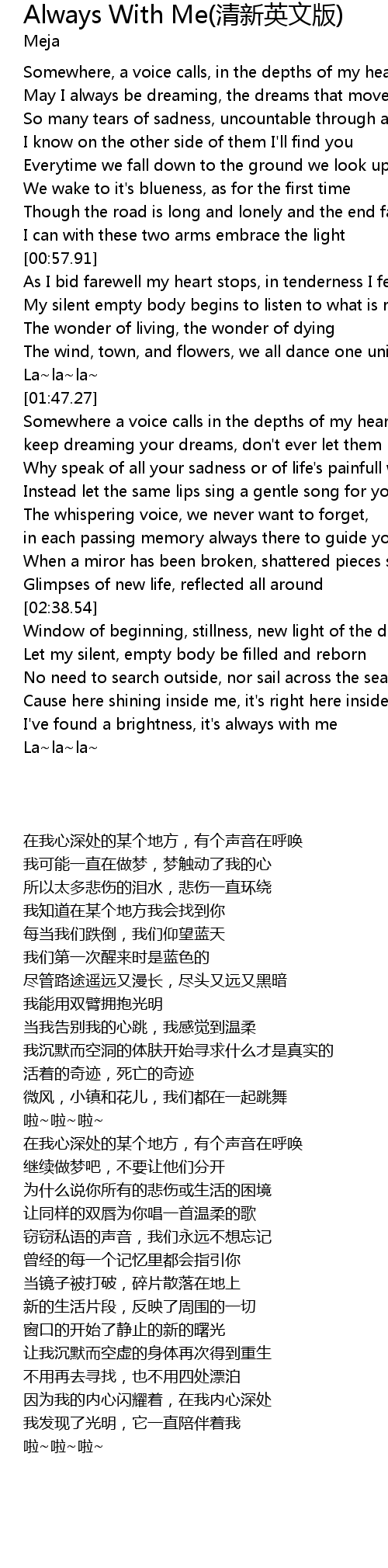Always With Me Lyrics - Added on august 24, 2017.