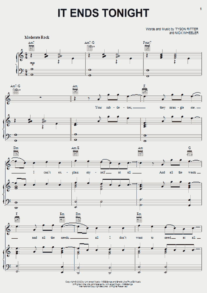 It Ends Tonight Piano